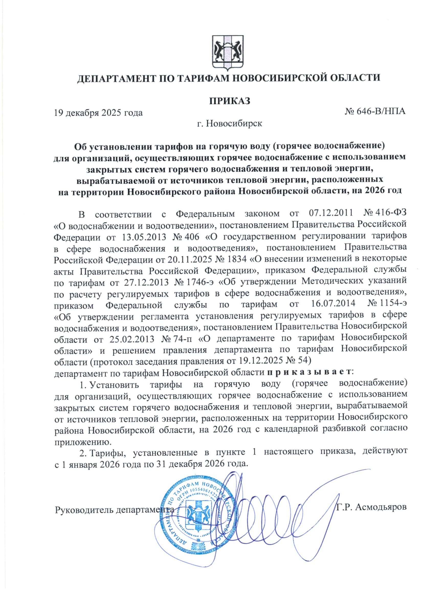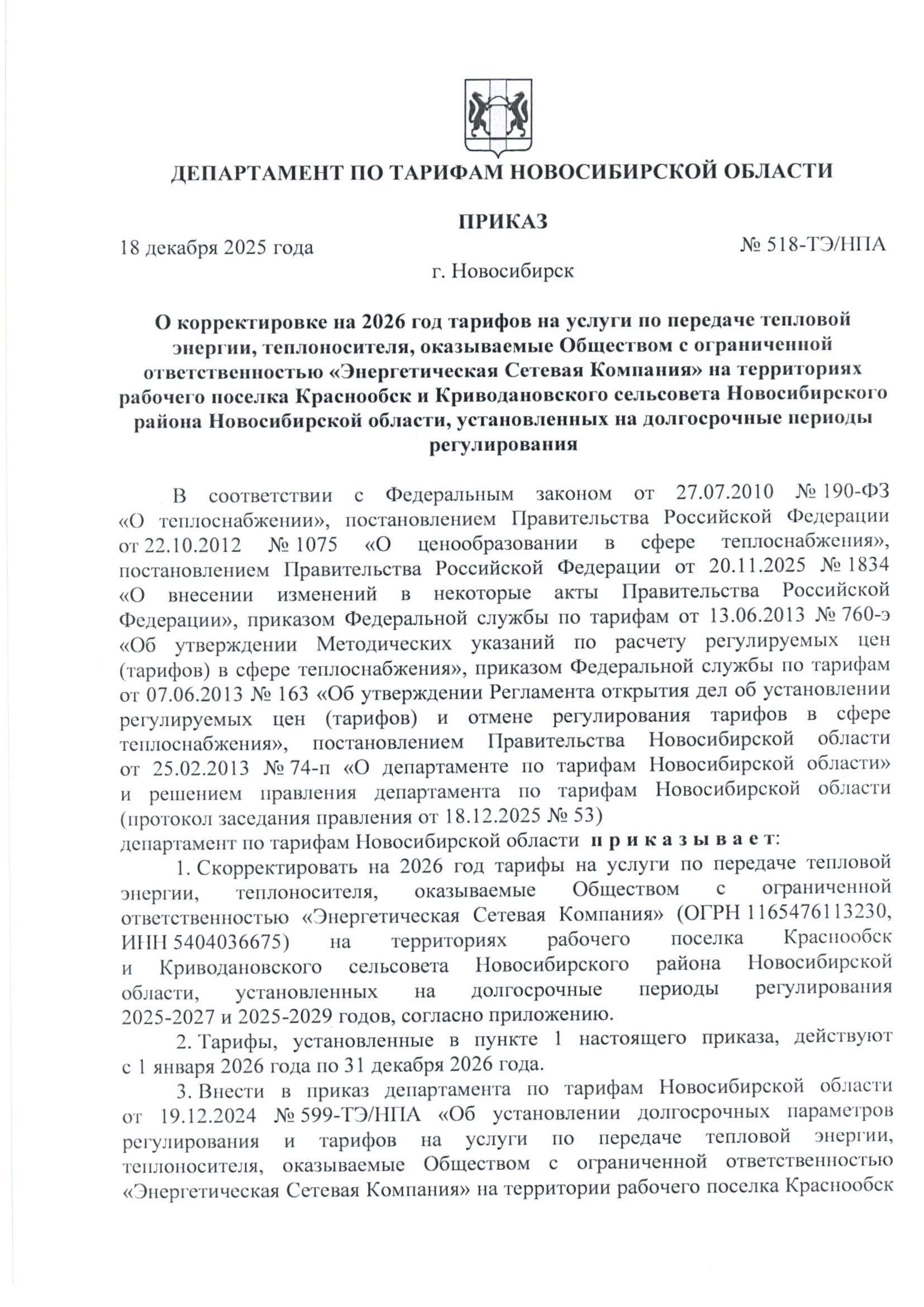 - Тарифы на выработку тепловой энергии, производство горячей воды, транспортировку тепловой энергии (мощность), транспортировку питьевой воды и приему и транспортировке сточных вод, утвержденных Департаментом по тарифам НСО